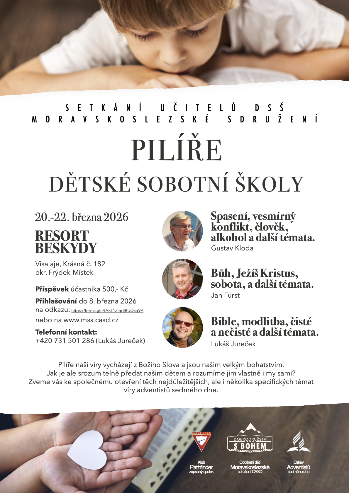 chtěl bych Vás srdečně pozvat na vzdělávací seminář pro učitele dětí, který jsem letos tématicky zaměřil na základy víry. Vnímám v ní velké bohatství naší církve, ale zároveň i určitou výzvu, jak tyto „pilíře víry“ předat srozumitelně a atraktivně dětem. Uvědomuji si, že máme-li toho být schopni, potřebujeme daným věroučným bodům rozumět v prvé řadě my sami, a proto Vám chci nabídnout nejen příležitost pro „didaktickou“ inspiraci, ale také pro kladení otázek a společné hledání odpovědí. Jsem proto vděčný, že jako hosté přijali pozvání i mí zkušení kolegové br. Jan Fürst a br. Gustav Kloda.